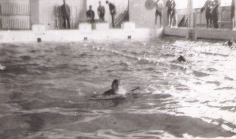 Заплыв в х.б, сапогах и оружием.