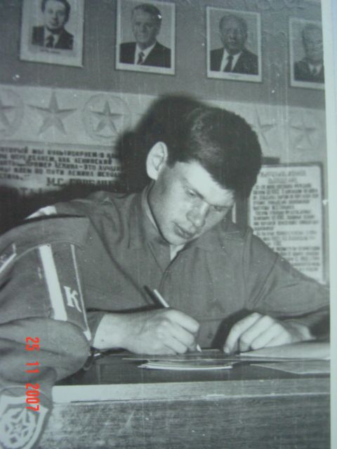 Андрюха Чухарев в Лен. комнате как всегда пишет письма 1988 г.