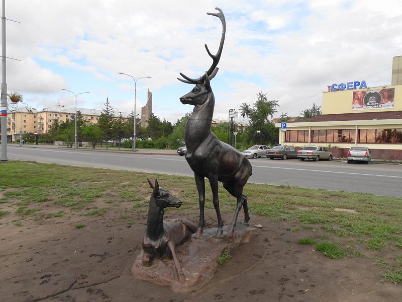 Быстрый олень на набережной Иртыша