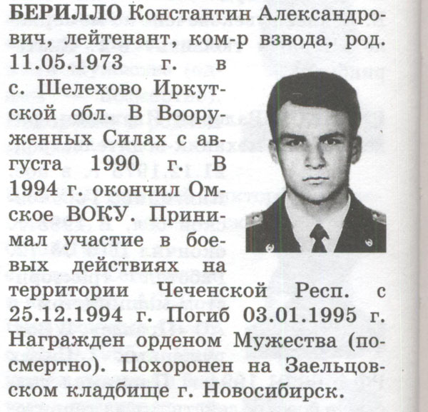 Выписка из "Кнги Памяти" МО РФ о военнослужащих ВС РФ, погибших в ходе вооружённого конфликта на территории Чеченской республики (декабрь 1994г.-декабрь 1996г.) (стр.36):